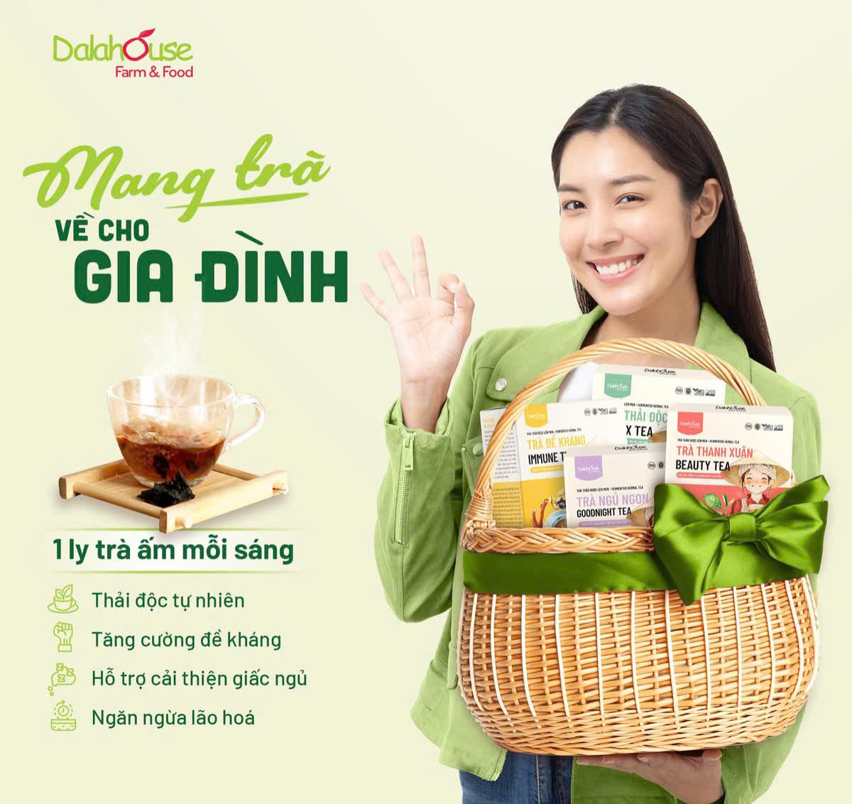 Tên sản phẩm: Combo 4 hộp trà Dalahouse * Thành phần: - Trà thanh xuân: 100% nguyên liệu canh tác sinh thái và hữu cơ. Bưởi đen (bưởi lên men), hồng trà, đương quy, cam