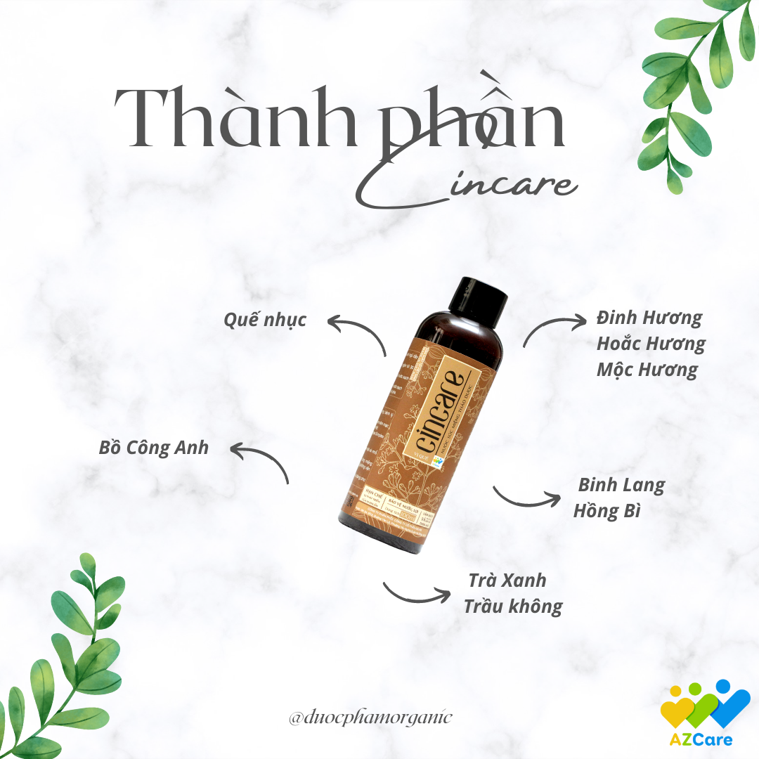 NƯỚC SÚC MIỆNG THẢO DƯỢC CINCARE: NƯỚC HOA CHO MIỆNG - LÁ CHẮN CHO RĂNG Với thành phần hoàn toàn từ thiên nhiên không chứa chất tạo màu, không cồn, không paraben, Nước súc miệng
