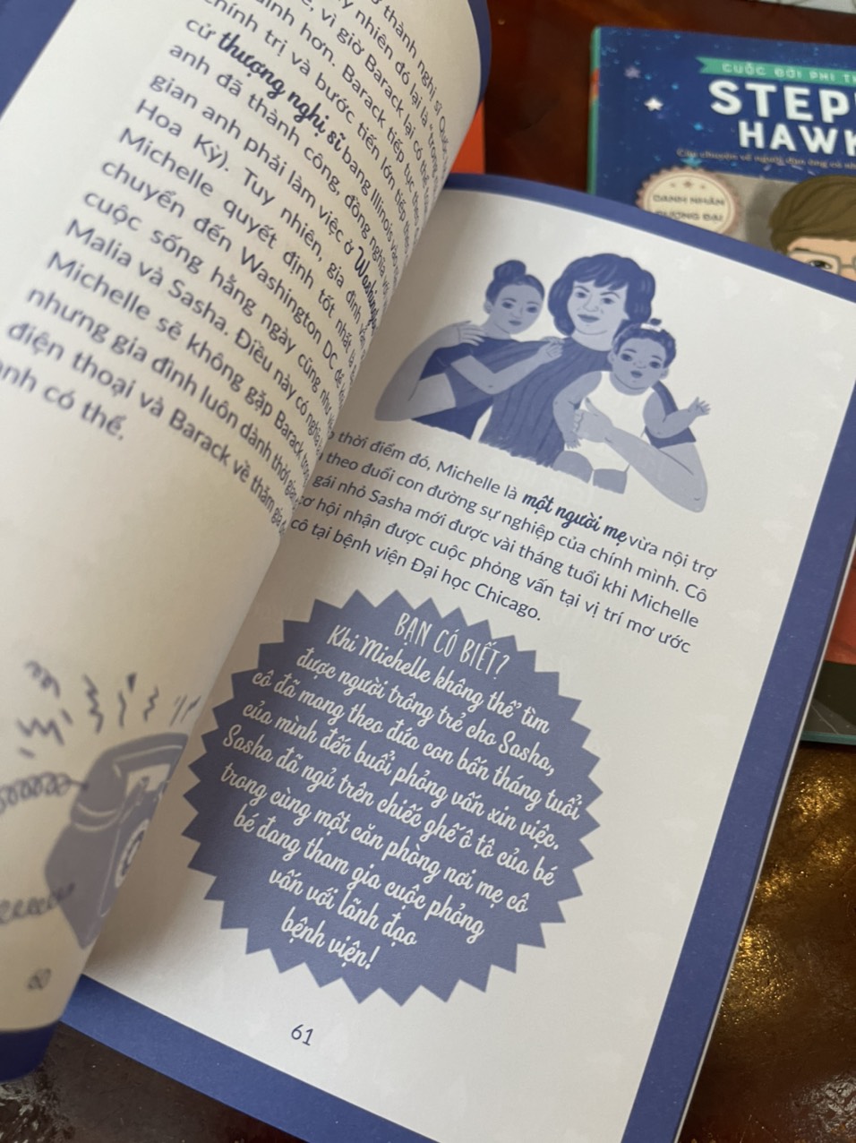 MICHELLE OBAMA sinh ra tại Chicago và đã đấu tranh đòi quyền bình đẳng một thời gian dài trước khi trở thành phu nhân tổng thống của Hợp chúng quốc Hoa Kỳ. Với tư cách là một nhà vận động ủng hộ đa sắc tộc và một tiếng nói đanh thép từ Nhà Trắng, bà đã truyền cảm hứng cho mọi người trên khắp thế giới. Bà vẫn tiếp tục dùng sức ảnh hưởng của mình để thay đổi và giúp thế giới trở nên tốt đẹp hơn.