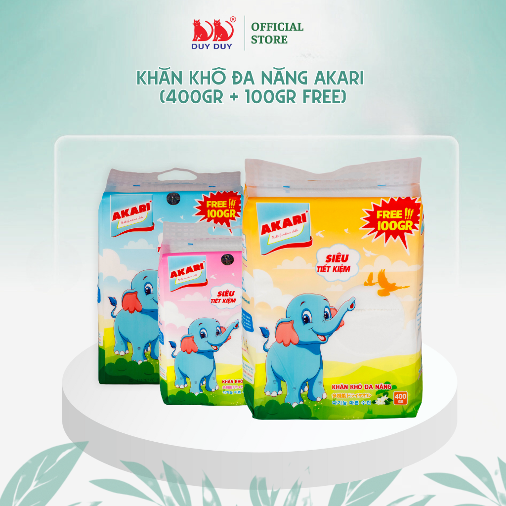 ombo Khăn khô đa năng Akari vải sợi tự nhiên 500gr (13.5x20cm) dạng rút siêu tiết kiệm Khăn khô đa năng Akari 400gr +100 Free được làm từ vài không dệt Rayon giải pháp chăm