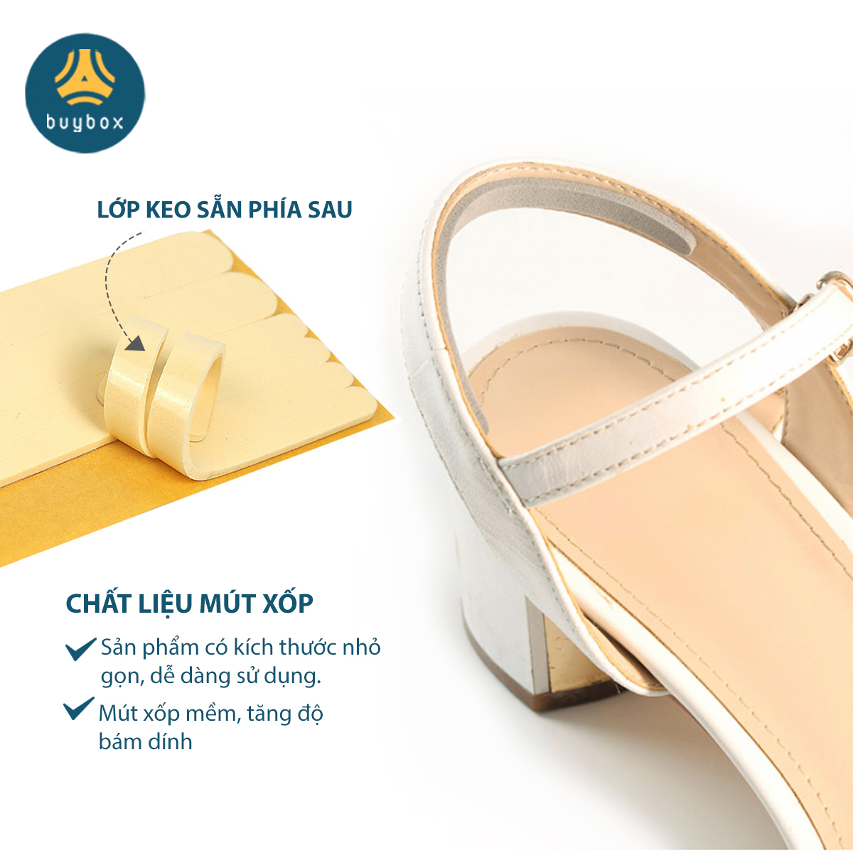 CÔNG DỤNG NỔI BẬC Lót giày đa năng chống rộng buybox là sự kết hợp giữa lót giày và lót chống trầy gót chân. Giúp chống rộng giày, giảm size.