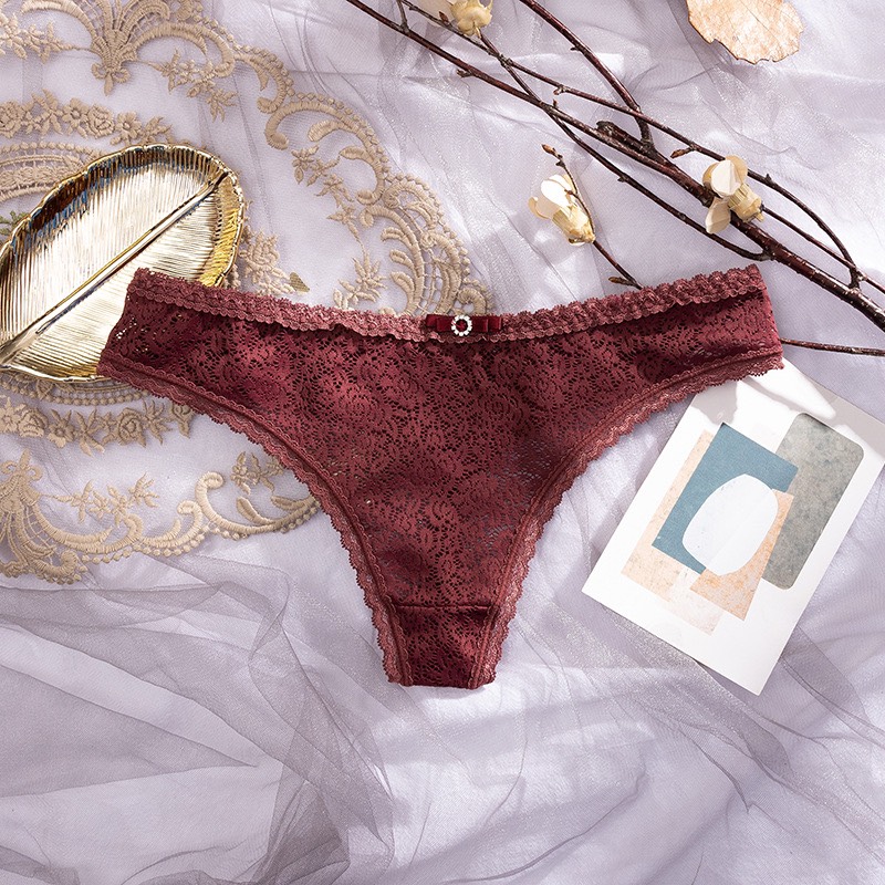 Free Size<55kg 1. Tên sản phẩm: Quần lót lọt khe dành cho nữ 2. Chất liệu: Ren 3. Màu sắc: Nhiều màu tùy chọn 4. Kích thước sản phẩm: Một kích cỡ 5. Phong cách: