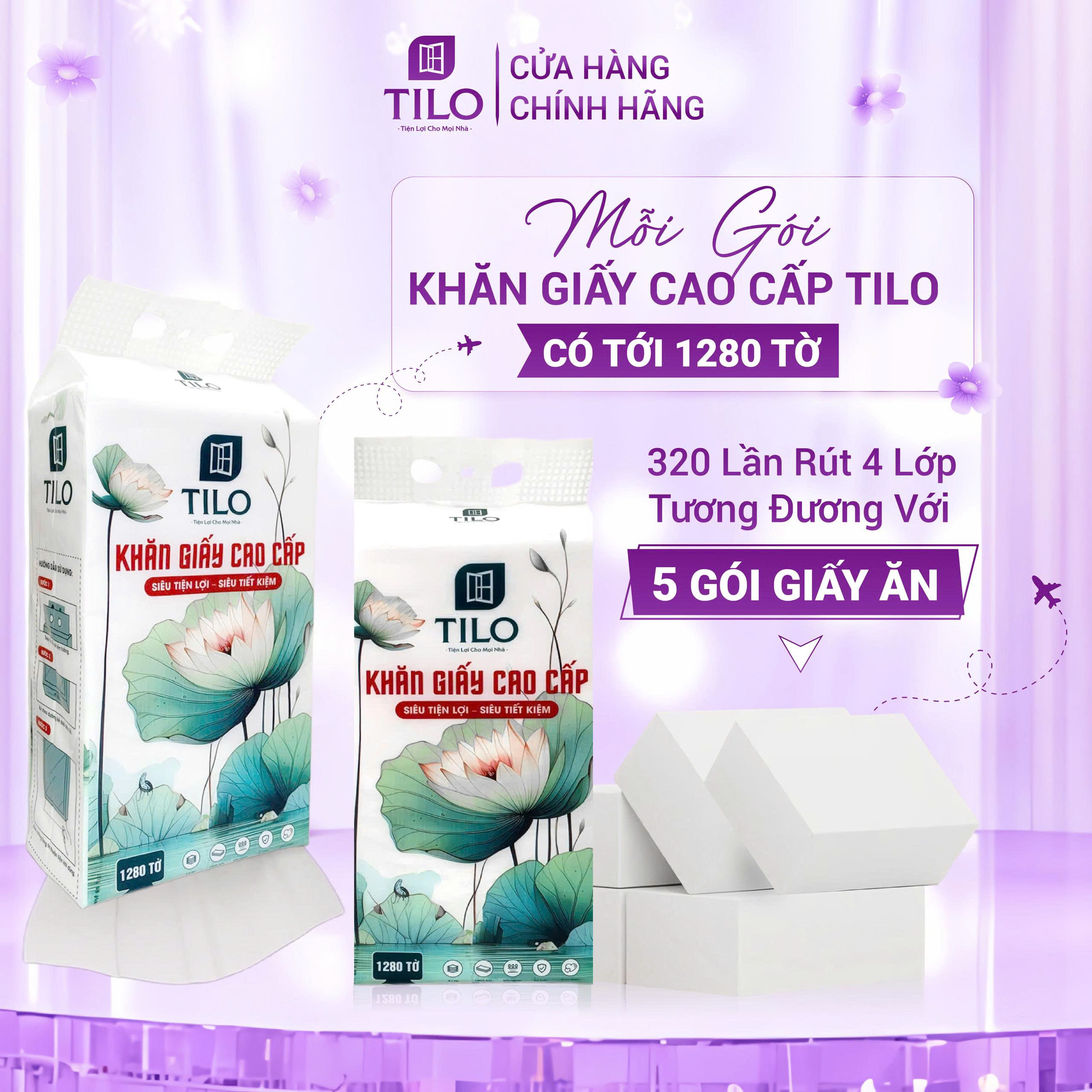 Combo 6 Bịch Khăn Giấy Rút Đáy Hoa Sen TiLo 1280 Tờ 6 Bịch 1 Thùng Tặng Kèm 3 Móc Treo Đôi – Giấy Dai, Mềm Mịn, An Toàn Chuẩn 5K! Bạn đang chán ngán với khăn giấy rút đáy kém chất lượng, dễ rách, hay để lại bụi khó chịu? Đừng lo lắng! TiLo mang đến giải pháp hoàn hảo, chấm dứt mọi phiền toái cho bạn và gia đình!   Đột Phá Tiện Ích & Chất Lượng – Combo Khăn Giấy Rút Đáy TiLo TiLo tự hào giới thiệu Combo 6 bịch Khăn Giấy Rút Đáy Cao Cấp phiên bản đặc biệt với bao bì hoa sen trang nhã. Đây không chỉ là sản phẩm, mà còn là lời cam kết về sự tinh tế, an toàn và tiện lợi vượt trội, đồng thời tôn vinh vẻ đẹp thuần khiết của người phụ nữ Việt Nam.   Ưu Điểm Nổi Bật – "Giải quyết" Những Lo Lắng Của Bạn: Không Còn Lo Giấy Rách, Giấy Dai Bền: Giấy 4 lớp dày dặn, được làm từ 100% bột gỗ nguyên chất cao cấp. Độ bền nước vượt trội, thách thức mọi vết bẩn, giúp bạn tiết kiệm tối đa vì chỉ cần một tờ là đủ! Mềm Mại Như Lụa, Dịu Nhẹ Làn Da: Chất liệu giấy mềm mại tuyệt đối, an toàn và thân thiện ngay cả với làn da nhạy cảm nhất của bé yêu. Nói Không Với Bụi Giấy & Huỳnh Quang: Bề mặt giấy mịn màng, không gây trầy xước đồ vật, không để lại bụi giấy khó chịu. Không chứa huỳnh quang, không chất tẩy trắng, không hóa chất độc hại, không hương liệu, không gây kích ứng đảm bảo an toàn cho sức khỏe cả gia đình.   Thiết Kế Thông Minh & Sang Trọng: Thiết kế rút đáy tiện lợi, dễ dàng lấy giấy, hạn chế tình trạng bung giấy, giữ vệ sinh tối ưu. Bao bì hoa sen hiện đại, trang nhã, nâng tầm không gian sống của bạn.   Siêu Tiện Lợi Mọi Lúc Mọi Nơi: Dễ dàng đặt hoặc treo tại phòng làm việc, phòng khách, phòng bếp, phòng ngủ, phòng tắm… Nhờ quà tặng độc đáo!   Siêu Tiết Kiệm Với Số Tờ Vượt Trội: Mỗi gói lên đến 1280 tờ, tương đương 320 lần rút – nhiều hơn hẳn các sản phẩm thông thường. Tương đương 05 bịch giấy ăn để bàn thông thường!   Quà Tặng Độc Quyền – Nâng Tầm Tiện Ích! Khi mua Combo 6 bịch Khăn Giấy Rút Đáy Hoa Sen TiLo, bạn sẽ được "Tặng kèm 3 móc treo đôi in logo TiLo", giúp bạn treo tại phòng khách, phòng ngủ, phòng bếp, phòng tắm, toilet...rất tiện lợi.   Thông Tin Sản Phẩm Chi Tiết: Tên sản phẩm: Combo 6 Bịch Khăn Giấy Rút Đáy Hoa Sen TiLo Số tờ/gói: 1280 tờ (tương đương 320 lần rút) Số lớp: 4 lớp Chất liệu: 100% bột gỗ nguyên chất Công nghệ: Dập nổi 4D Quy cách đóng gói: 6 gói/thùng carton 3 lớp dày dặn Quà tặng: 03 móc treo đôi in logo TiLo Hạn sử dụng: 05 năm (in trên bao bì) Sản xuất tại: Việt Nam Chứng nhận: Đạt chứng nhận hợp quy   Đừng để những phiền toái nhỏ làm ảnh hưởng đến cuộc sống của bạn! Hãy trải nghiệm ngay Khăn Giấy Rút Đáy TiLo và cảm nhận sự khác biệt lớn lao mà chúng tôi mang lại!   MUA NGAY ĐỂ NHẬN ƯU ĐÃI & NHẤN VÀO GIỎ HÀNG ĐỂ ĐẶT MUA NGAY!