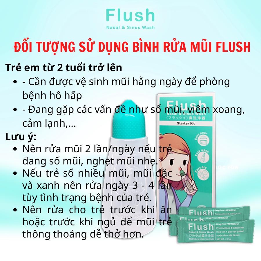 - Không chỉ trẻ nhỏ bình rửa mũi Flush hoàn toàn có thể sử dụng cho cả người lớn. CÔNG DỤNG CỦA BÌNH RỬA MŨI FLUSH