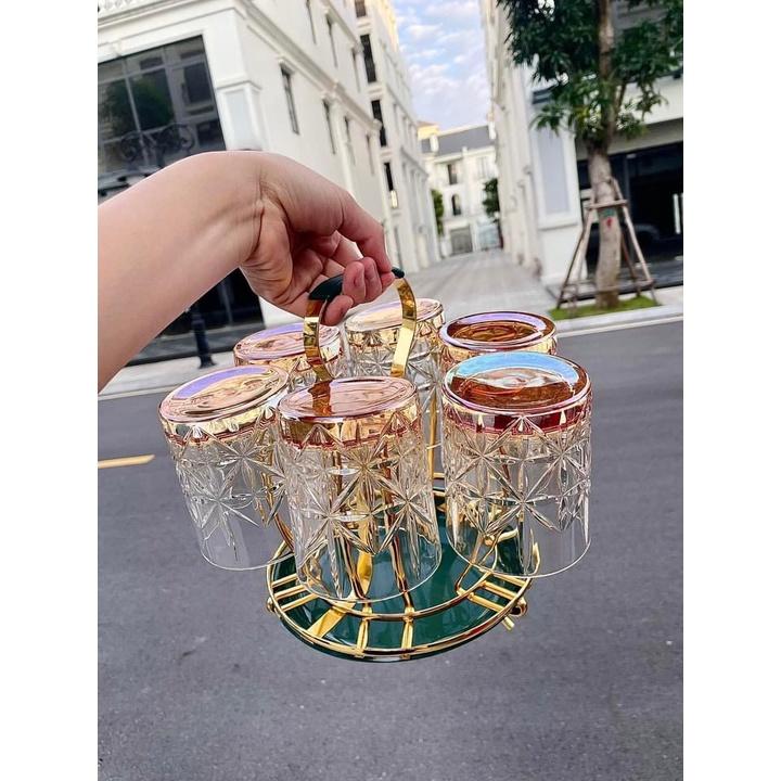 Chất liệu: thủy tinh Bộ sản phẩm gồm: 6 cốc thủy viền vàng VÀ GIÁ ÚP CỐC THEO HÌNH Thiết kế đẹp mắt, phù hợp tiện dụng Độ bền cao, chịu nhiệt tốt, hạn chế