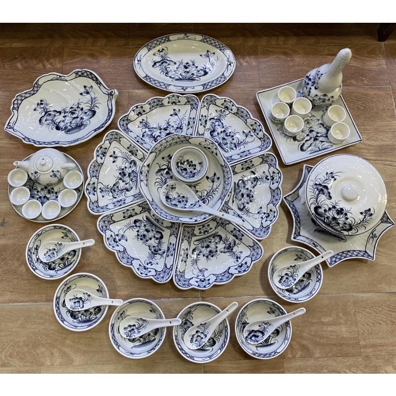Bộ đồ ăn men lam vẽ hoa đào Gốm sứ Bát Tràng cao cấp không chì Bộ đồ ăn gồm 15 món như hình 6 bát cơm 1 bát mắm 1 đĩa muối 1 đĩa
