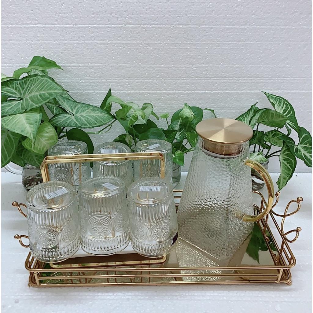 Bộ Bình Cốc Uống Nước Thuỷ Tinh Hổ Phách Cao Cấp 8 Chi Tiết Sang Trọng Độ Bên Cao M04