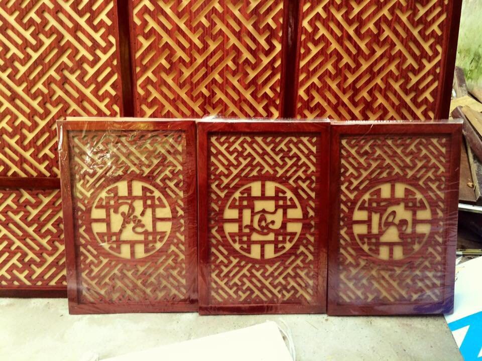 Combo phòng thờ gồm : 3 bàn thờ ( thổ công , gia tiên , phật ) + vách CNC gỗ sồi . Trả khách Hà Nội