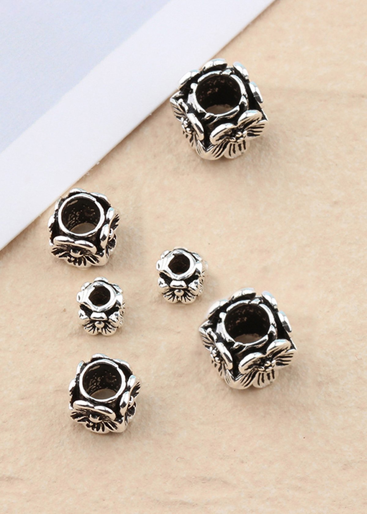 CHARM BẠC CHẶN HẠT HÌNH VUÔNG HOA 4 MẶT