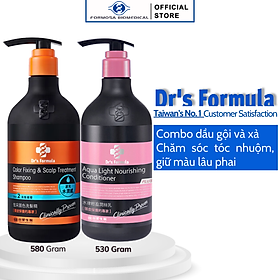 Mua tại TiktokSẢN PHẨM CHÍNH HÃNG 100% NHẬP KHẨU TRỰC TIẾP TỪ ĐÀI LOAN COMBO BAO GỒM: -01 Dầu Gội Cố Định Màu & Chăm Sóc Da Đầu Tóc Nhuộm Dr's Formula Color Fixing & Scalp Treatment Shampoo (Glossy And Moisturizing) 580g -01 Dầu Xả Dưỡng Tóc Bóng Mượt Dr's Formula Aqua Light Nourishing Conditioner 530g ĐẶC TÍNH CÔNG DỤNG: