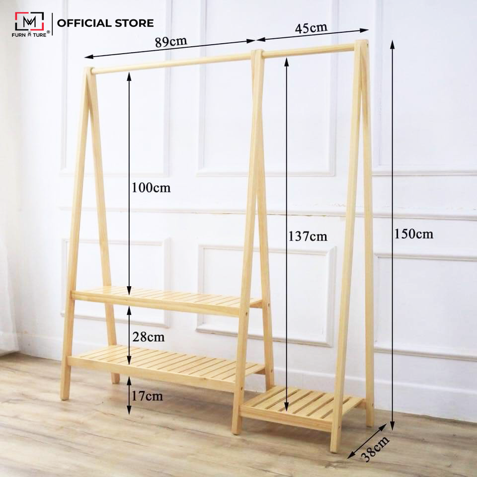 GIÁ TREO QUẦN ÁO CHỮ A 2 TẦNG - A HANGER THÔNG TIN SẢN PHẨM: - Kích thước: 86 x 38 x 148 cm (Dài x Rộng x Cao). - Chất liệu: Gỗ thông nhập