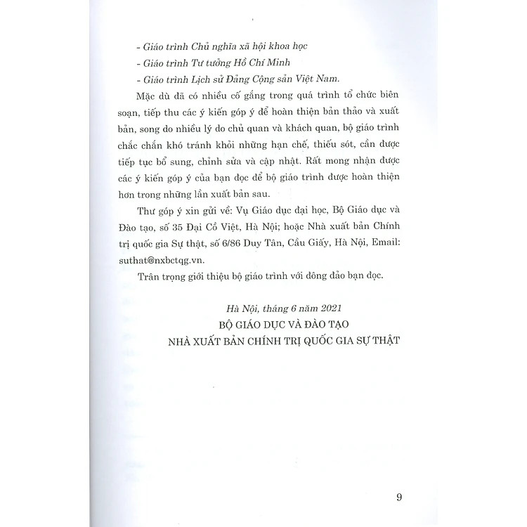 Bộ sách là tài liệu giảng dạy, học tập cho giảng viên, sinh viên các trường đại học theo chương trình mới do Bộ Giáo dục và Đào tạo và Nhà xuất bản Chính trị Quốc gia xuất bản.