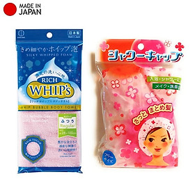✨Combo khăn tắm tạo bọt Whip's (loại vừa bọt) + mũ tắm họa tiết hoa 25cm - made in Japan