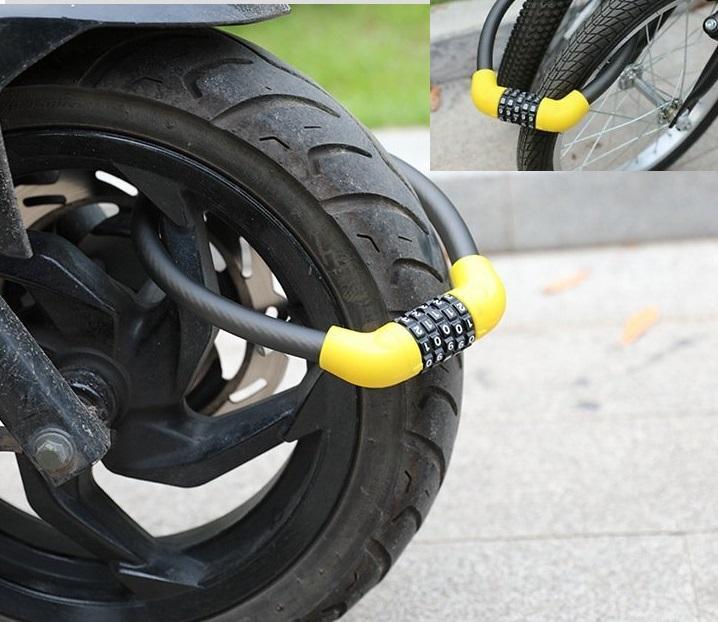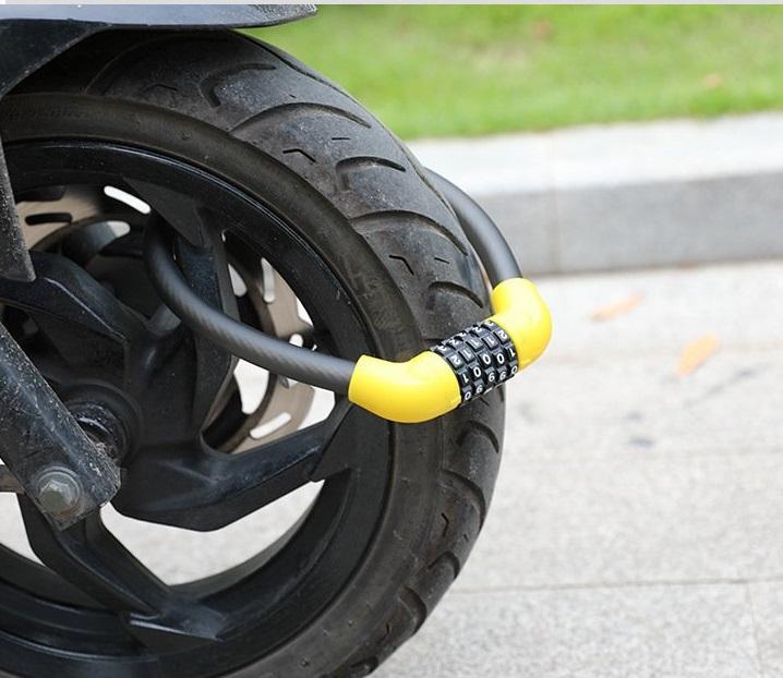Khóa số dây chống trộm xe đạp kiêm đèn báo sau, loại 5 mã số có thể đổi