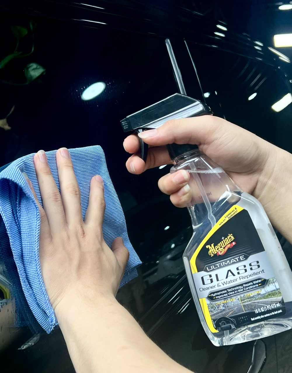 • Xịt 1 lượng vừa đủ lên bề mặt kính, dùng khăn microfiber tiêu chuẩn lau đến khi bề mặt kính sạch & trở nên sáng bóng là hoàn thành.