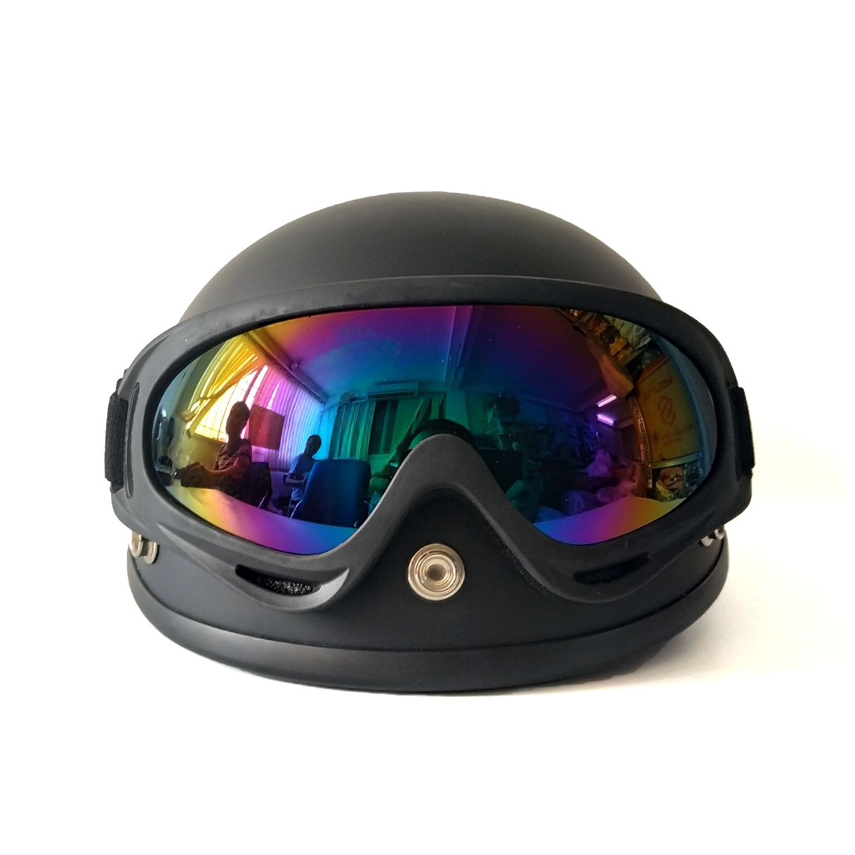 - Phong cách thiết kế: mũ kiểu 3/4 kèm kính dài, mũ được thiết kế dáng tròn, đi kèm 2 miếng ốp má, giúp tăng thêm hiệu quả bao phủ, bảo vệ khuôn mặt. -
