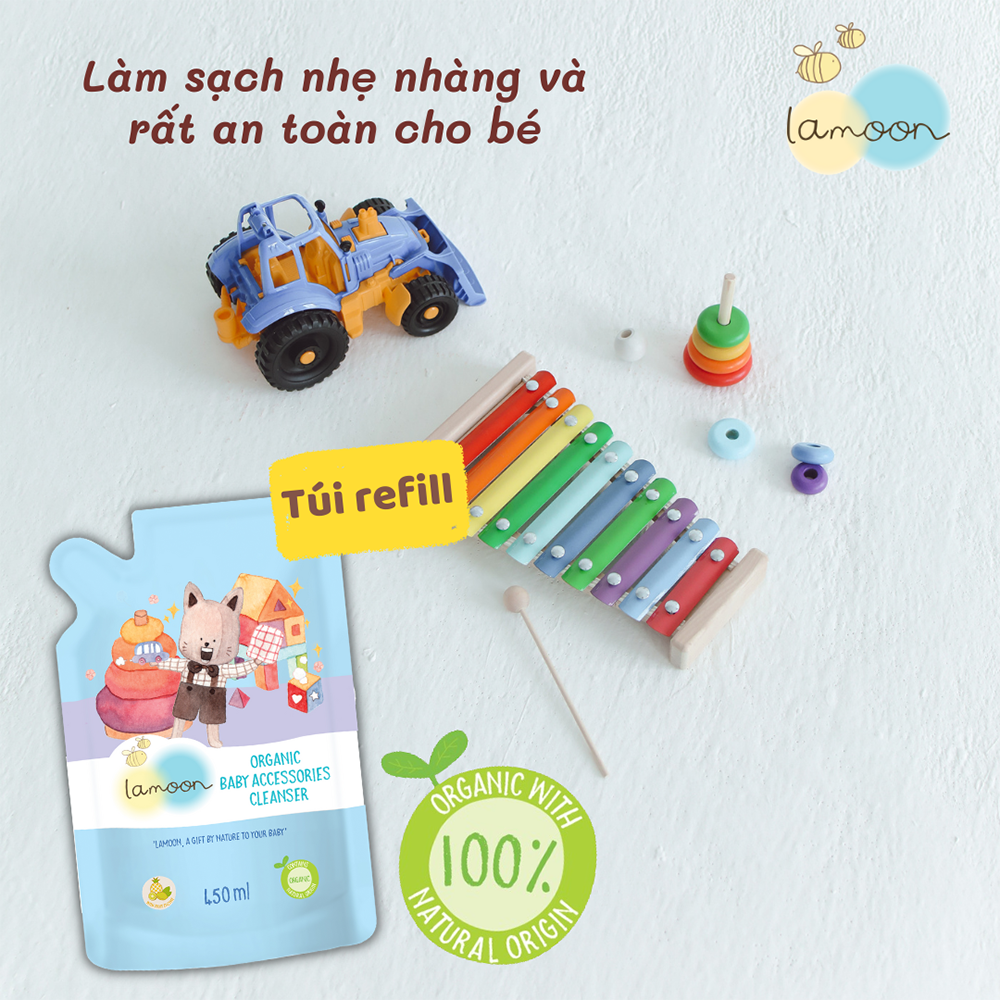 Nước rửa đồ chơi hữu cơ (organic) cho bé Lamoon – Túi 450ml