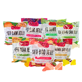 Kẹo thạch có hình kim cương đẹp mắt, bên ngoài mềm mịn cắn vào sẽ có một lớp nhân sốt trái cây tan chảy thơm ngon. Sốt được làm hoàn toàn 100% từ trái cây thật, đảm bảo an toàn và vị ngon tuyệt vời.