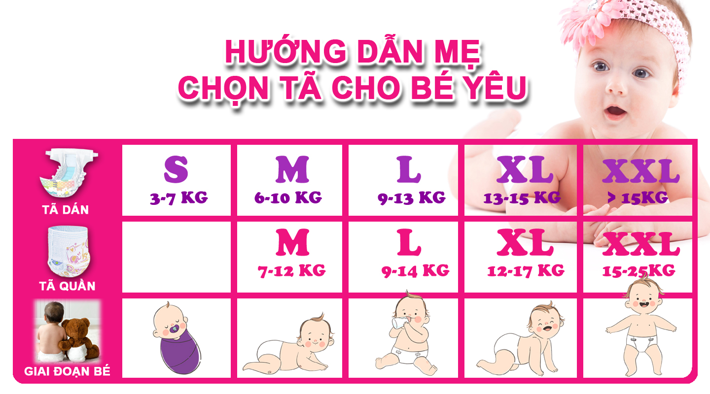 -Size XXL: cho bé từ 15-25 ký