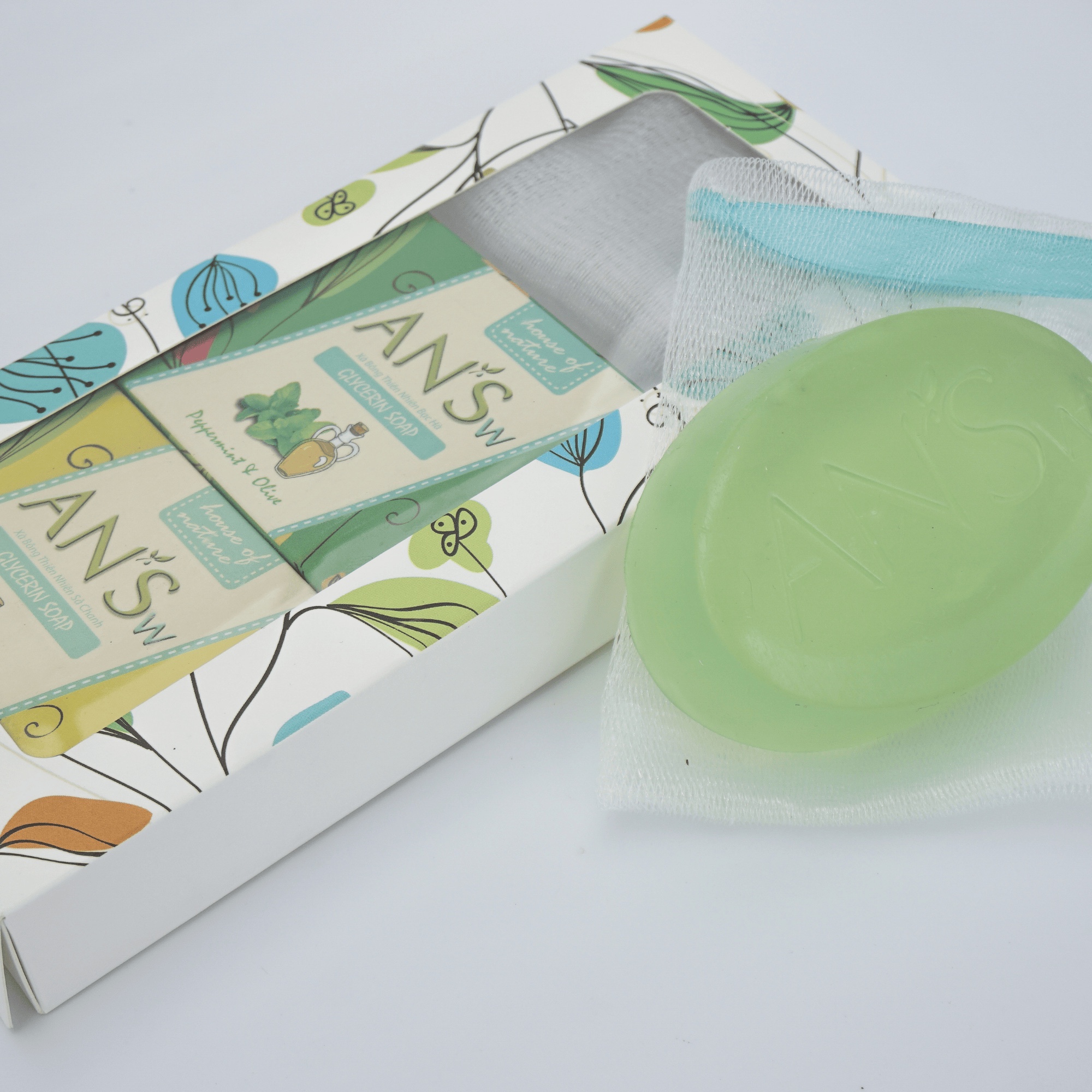 Với sự kết hợp giữa tinh dầu thiên nhiên (Bạc Hà, Sả Chanh, Lavender), dầu Olive và Glycerin. Xà phòng thiên nhiên An’sw giúp làm sạch và không gây khô da, dưỡng da mềm mại.