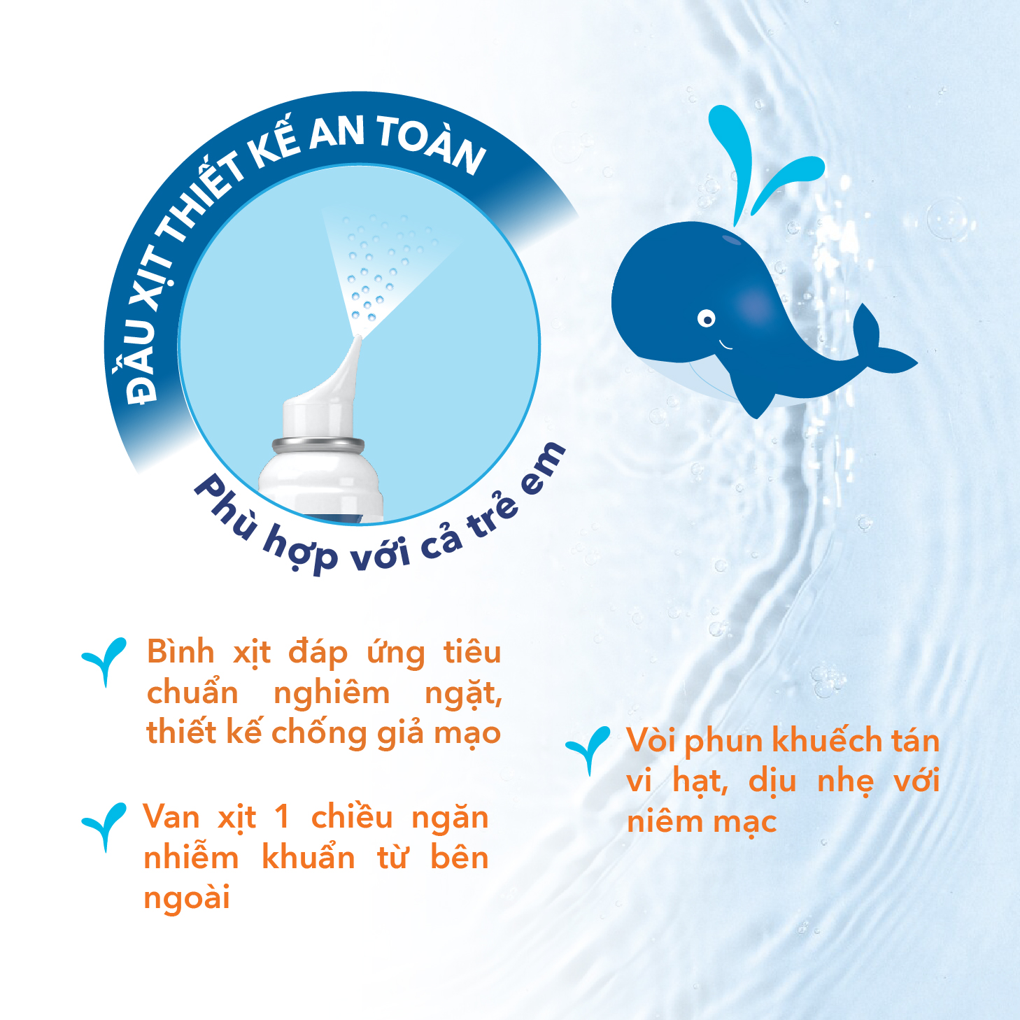 - Rửa sạch vòi xịt bằng nước, lau khô và đóng nắp sau khi sử dụng. *Sản phẩm an toàn khi sử dụng ở mọi tư thế. Với trẻ sơ sinh, người cao tuổi, nằm liệt giường hay hạn chế vận động, nên sử dụng sản phẩm ở tư thế nằm nghiêng và đầu hơi nâng cao. TÁC DỤNG PHỤ: Không có tác dụng phụ. CHỐNG CHỈ ĐỊNH: