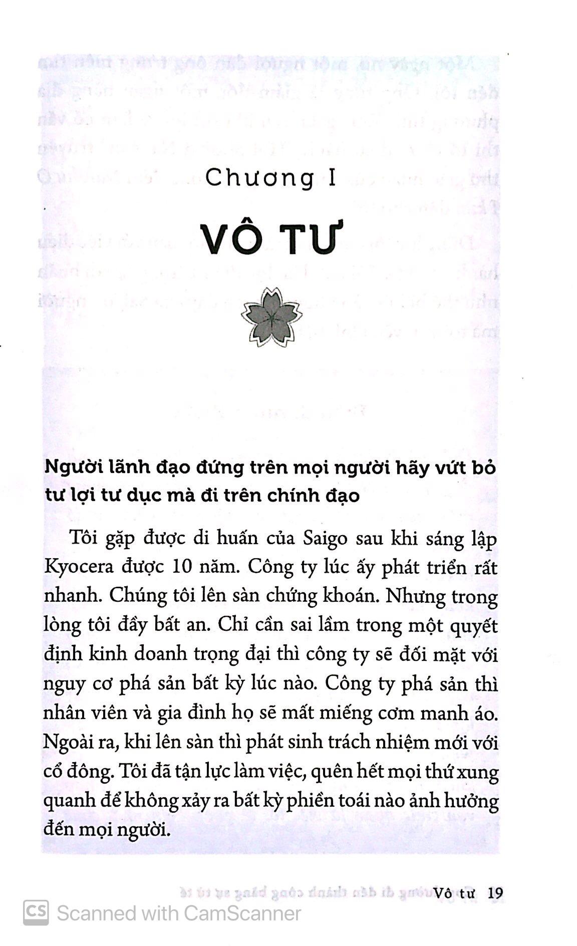 Quyển sách này nói về triết lý kinh doanh của một nhà kinh doanh tài ba hàng đầu Nhật Bản hiện đại - Inamori Kazuo, và tư tưởng làm người mẫu mực của một võ sĩ samurai chân chính bậc nhất nước Nhật thời Minh Trị duy tân - Saigo Takamori.