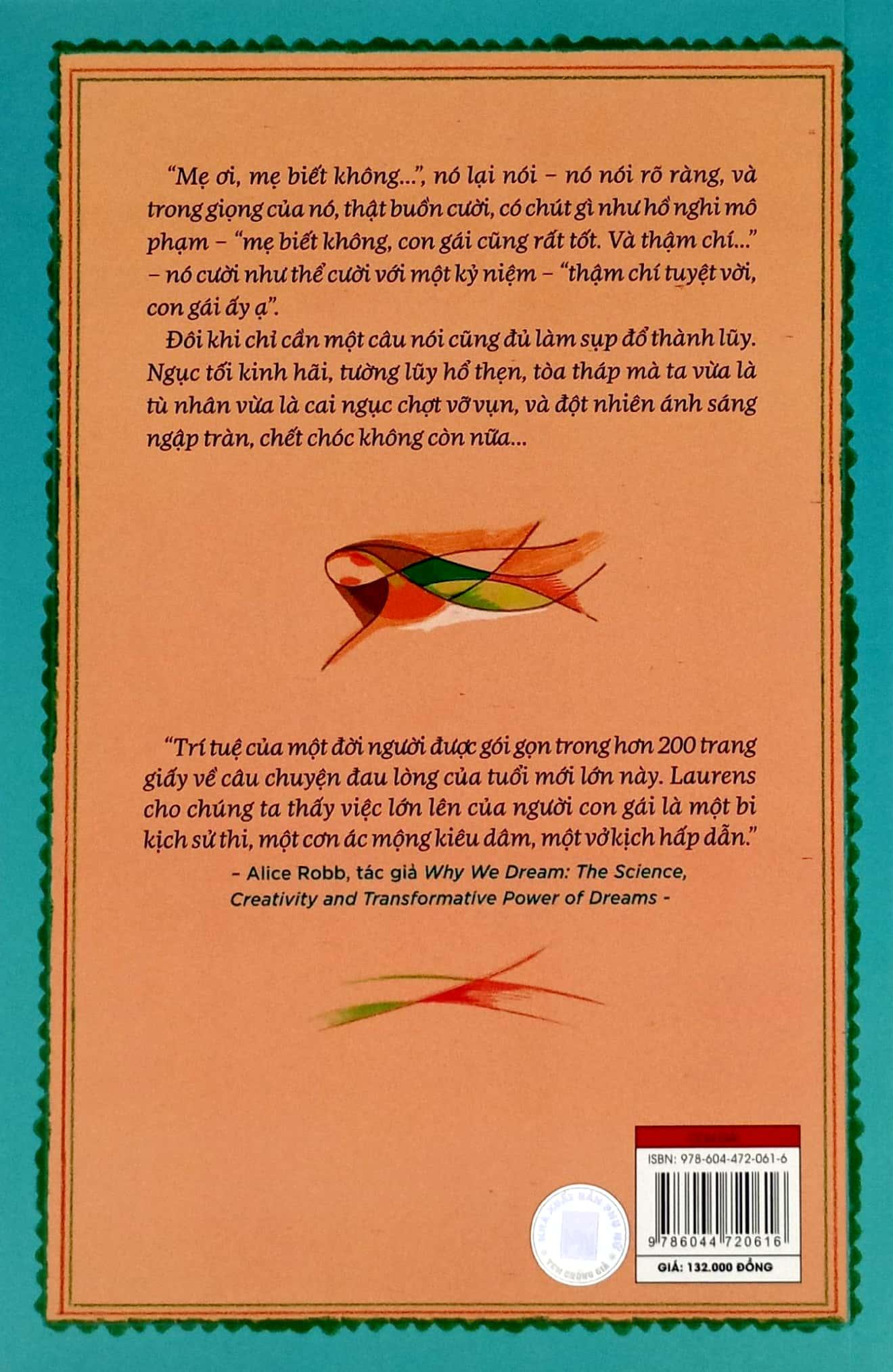 “Mẹ ơi, mẹ biết không, nó lại nói - nó nói rõ ràng, và trong giọng của nó, thật buồn cười, có chút gì như hồ nghi mô phạm – “mẹ biết không, con gái cũng rất tốt. Và thậm chí – nó cười như thể cười với một kỷ niệm – “thậm chí tuyệt vời, con gái ấy ạ”. Đôi khi chỉ cần một câu nói cũng đủ làm sụp đổ thành lũy. Ngục tối kinh hãi, tường lũy hổ thẹn, tòa tháp mà ta vừa là tù nhân vừa là cai ngục chợt vỡ vụn, và đột nhiên ánh sáng ngập tràn, chết chóc không còn nữ “Trí tuệ của một đời người được gói gọn trong hơn 200 trang giấy về câu chuyện đau lòng của tuổi mới lớn này. Laurens cho chúng ta thấy việc lớn lên của người con gái là một bị kịch sử thi, một cơn ác mộng kiêu , một vở kịch hấp dẫn.