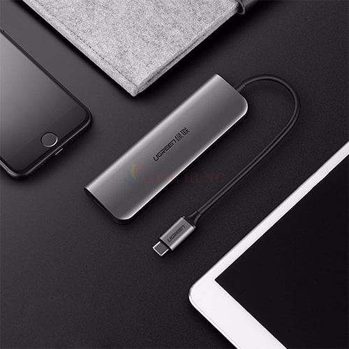 - Sản phẩm chính hãng Ugreen - Bộ chuyển đổi 6 trong 1 tiện dụng - Chuyển đổi tín hiệu USB-C sang HDMI - 3 cổng USB-A 3.0 - Hỗ trợ xuất hình ảnh độ