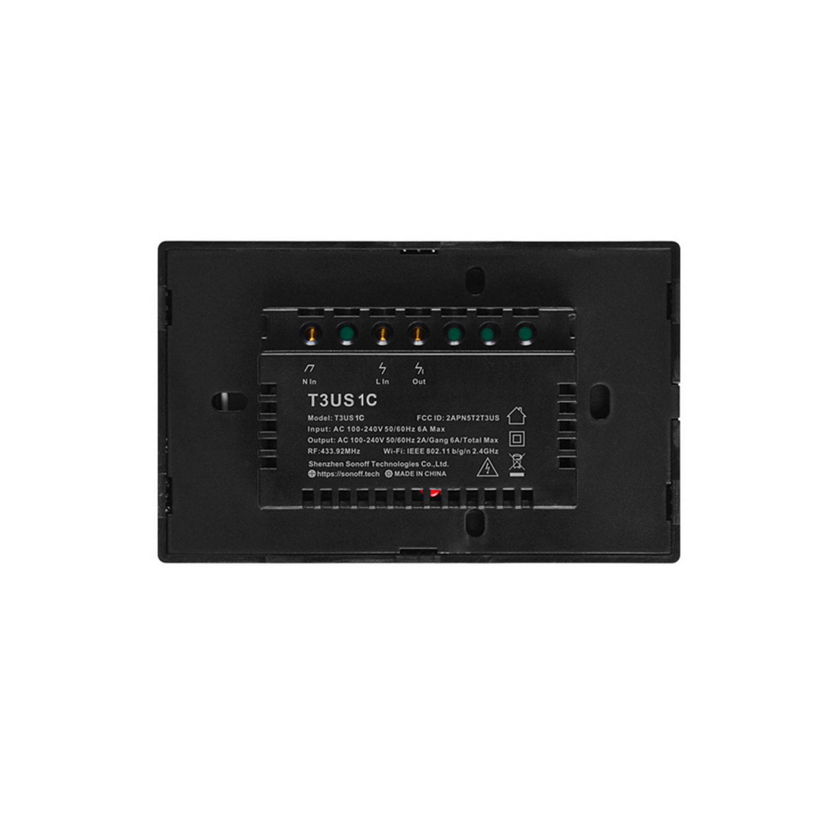 Overview: The WiFi smart switch can be controlled remotely using your phone, and devices connected with switches can work independently. Sonoff T3 supports 433MHz remote controller (not included) to control. Works with Amazon Alexa and Google Assistant which let you turn on or off your appliances with a voice command, perfect for those need to handle much housework simultaneously. Features sensitive touch buttons that are attached on the simple and stylish switches to ensure a modern and nice decoration on any wall surface. A slight tap for easier control. Set a time for devices and the switches will help you turn on or off them automatically. Tailor smart scene for your appliances. simply set an event to happen to trigger one SONOFF device or groups of devices with a tap on your phone. Compatible with IFTTT function, the switch can communicate with a slew of devices and services, to trigger them on or off. Features: Remotely control devices through a phone. Turn on/off devices with Amazon Alexa and Google Assistant. Touch control buttons for convenient operation. Set a particular time to turn on/off devices. Customize one or groups of SONOFF devices to turn on/off with a simple tap. Allow you to manage devices when there is no WiFi network in your space. Control the device with your family together via device sharing. Sync the real-time device status to your phone. IFTTT service triggers a bunch of actions. Can be managed by the 433MHz remote controller (not included). Specifications: Brand Name: SONOFF Model: T3 Standard: US Gang: 1 gang/2 gang/3 gang (Optional) Color: Black Input: AC 100-240V 50/60Hz 2A Max Output: AC 100-240V 50/60Hz, 2A/Gang, 6A/Total Max Enclosure Material: Toughened Glass Panel + PC Wireless Standard: IEEE 802.11 b/g/n 2.4G Size: 1207438(mm) Package List: 1 * Smart Switch