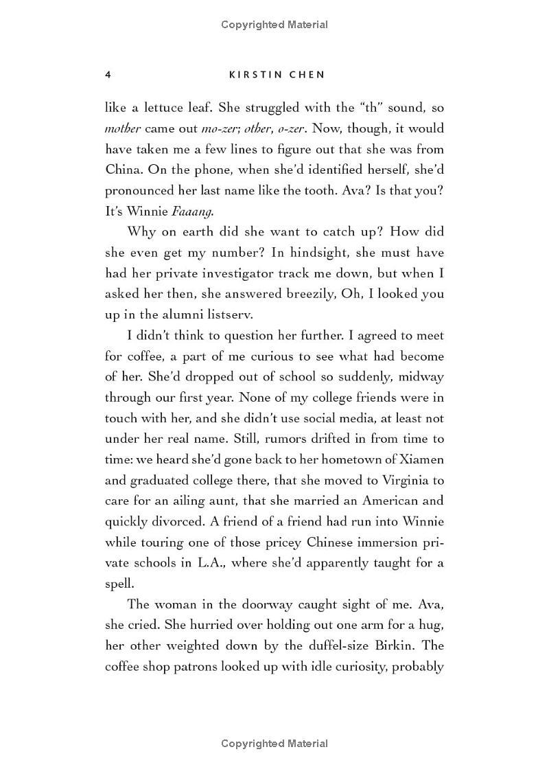 When the two women bump into one another at a local coffee shop, it seems like fate has intervened: Winnie's new-found success is courtesy of a shady business and she needs a favour; Ava is realising she is not built for the stay-at-home life. But what starts as one favour turns into two, then three, and soon Ava is in far deeper than she ever imagined.