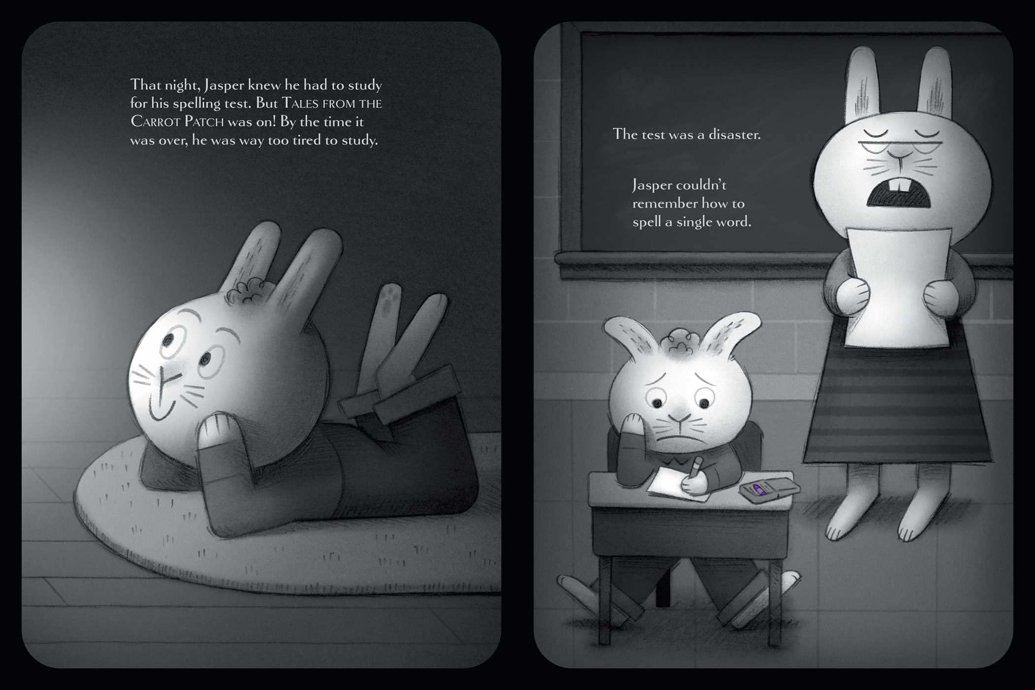 Jasper Rabbit has a problem: he is NOT doing well in school. His spelling tests? Disasters. His math quizzes? Frightening to behold. But one day, he finds a crayon lying in the gutter. Purple. Pointy. Perfect. Somehow…it looked happy to see him. And it wants to help.