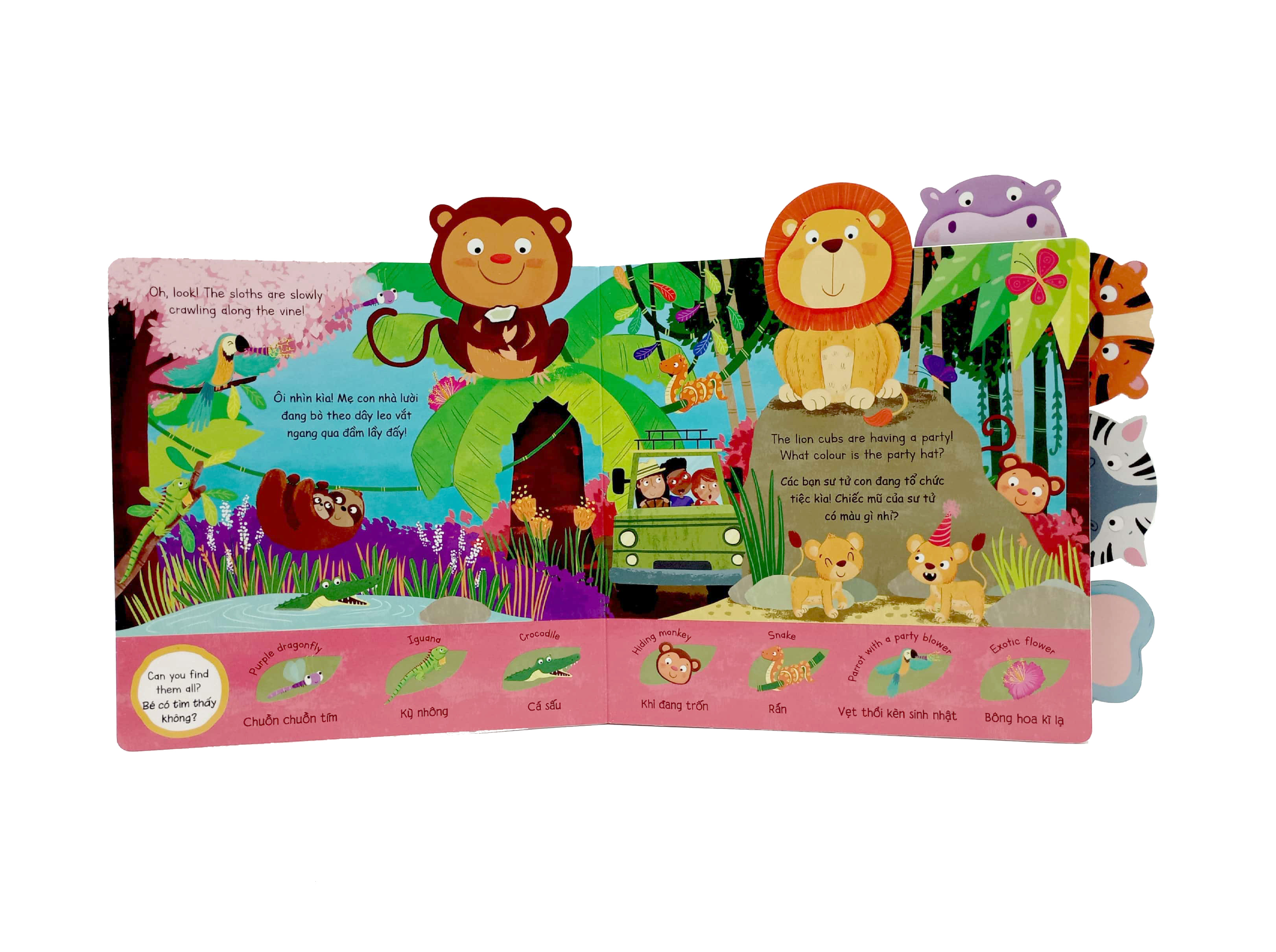 Bé hãy cùng các bạn nhỏ phiêu lưu một chuyến bằng xe cắm trại để khám phá khu rừng nhé! Mỗi trang sách Cùng Khám Phá: Bước Vào Rừng Rậm (Song Ngữ Anh Việt) ẩn chưa rất nhiều điều thú vị cho các bé khám phá đấy.
