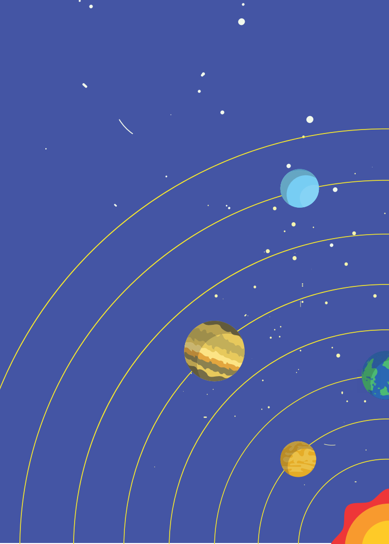 Trước hết, trẻ được bắt đầu khám phá về Trái Đất và Vũ trụ, một chuyến du hành trong không gian và thám hiểm Hệ Mặt Trời.