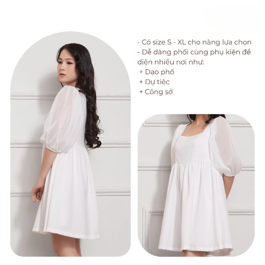 ✨Đầm Babydoll Lụa Crep, Tay Lửng, Tùng Nhún Maxivic, La Mộc - LM012209