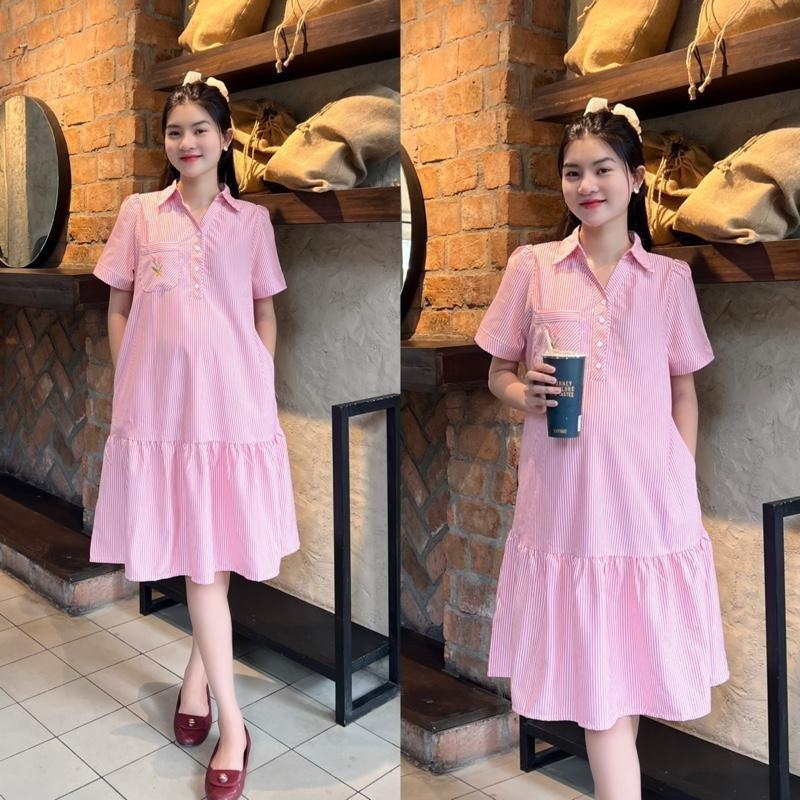 Mua tại Tiktok- THÔNG TIN SẢN PHẨM: • Đầm bầu công sở cổ sơ mi phối túi thêu phom đuôi cá dễ thương, trẻ trung. • Màu sắc: Xanh sọc, Hồng sọc, Đen, Xanh dương. • Chất vải: Cotton Hàn, Xốp Hàn. • Size: M (47 - 68Kg), L (67 - 80Kg). • Đầm thiết kế cài cúc 2 bên hông, có thể cài hoặc không cài tuỳ theo tháng thai. • Mom mặc thoải mái suốt thai kỳ và sau sinh luôn nha. • Em này diện đi làm, đi chơi, dạo phố đều xinh hết ý luôn ạ.