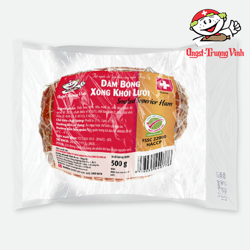 Dăm bông xông khói lưới 500g là sản phẩm được sản xuất từ nguồn nguyên liệu thịt heo tươi ngon, được chọn lọc kỹ lưỡng, xông khói bằng gỗ sồi tự nhiên được nhập khẩu trực tiếp từ châu Âu và được bao quanh bởi lớp lưới đặc biệt. Dăm bông xông khói lưới là món ăn thơm ngon, tiện lợi, cung cấp nhiều chất dinh dưỡng và là nguyên liệu để chế biến nhiều món ăn hấp dẫn khác nhau.