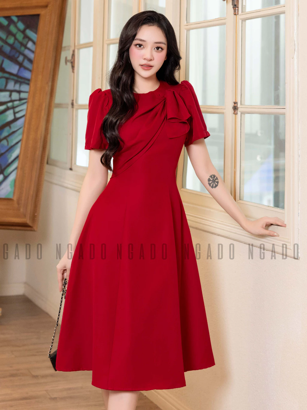 ✨Đầm đỏ xoắn vai NGADO , đầm dự tiệc , đầm công sở