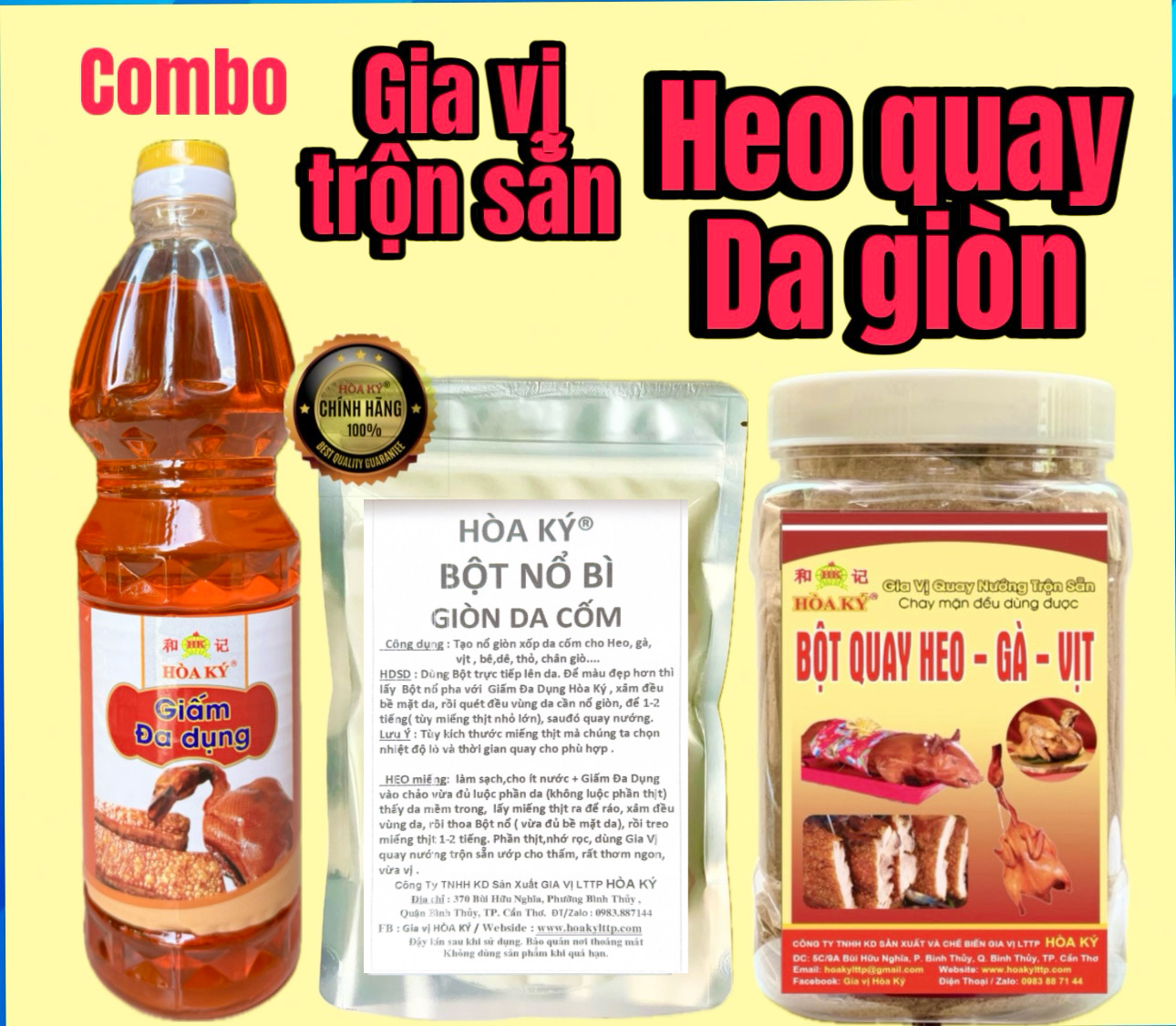 Quay da bóng giòn màu đẹp thì lấy Bột nổ pha với Giấm Đa Dụng Hòa Ký ; xâm đều bề mặt da, rồi quét đều vùng da cần nổ giòn, để 1– 2 tiếng hong gió ( tùy miếng thịt nhỏ lớn), sau đó quay nướng.