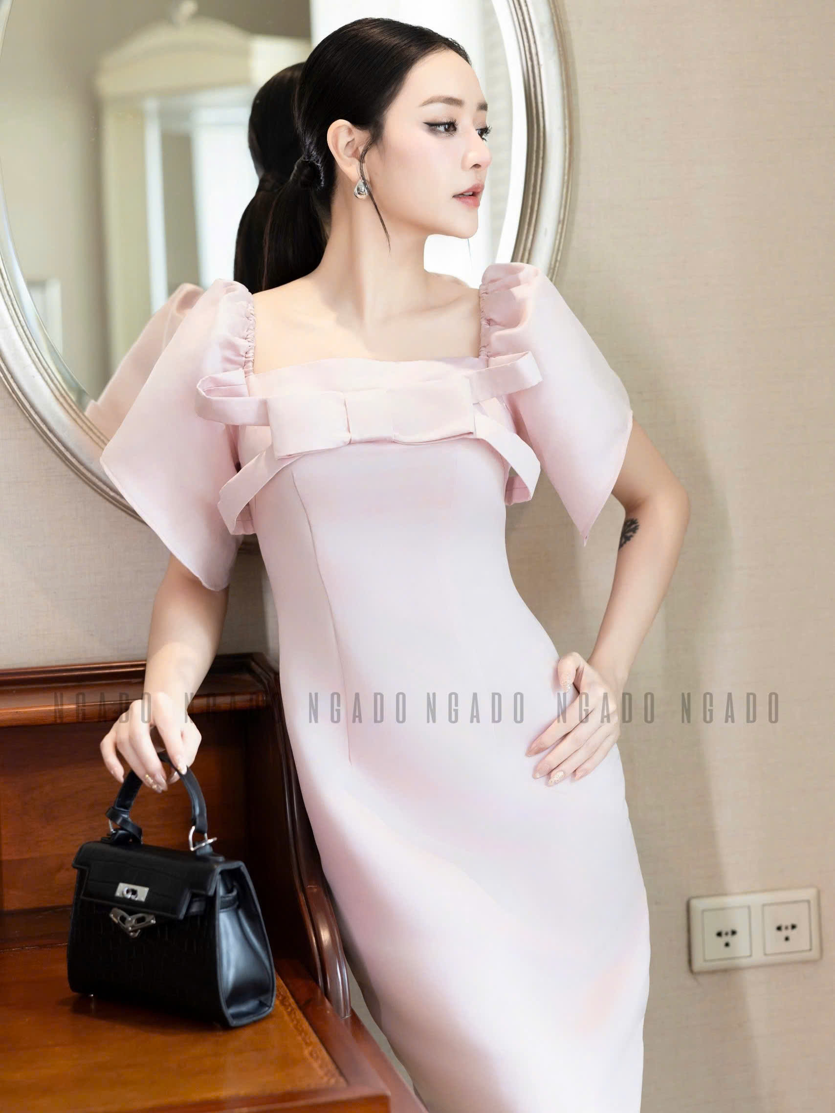 ✨Đầm hồng cổ vuông tay phồng NGADO , đầm dự tiệc , đầm sang trọng