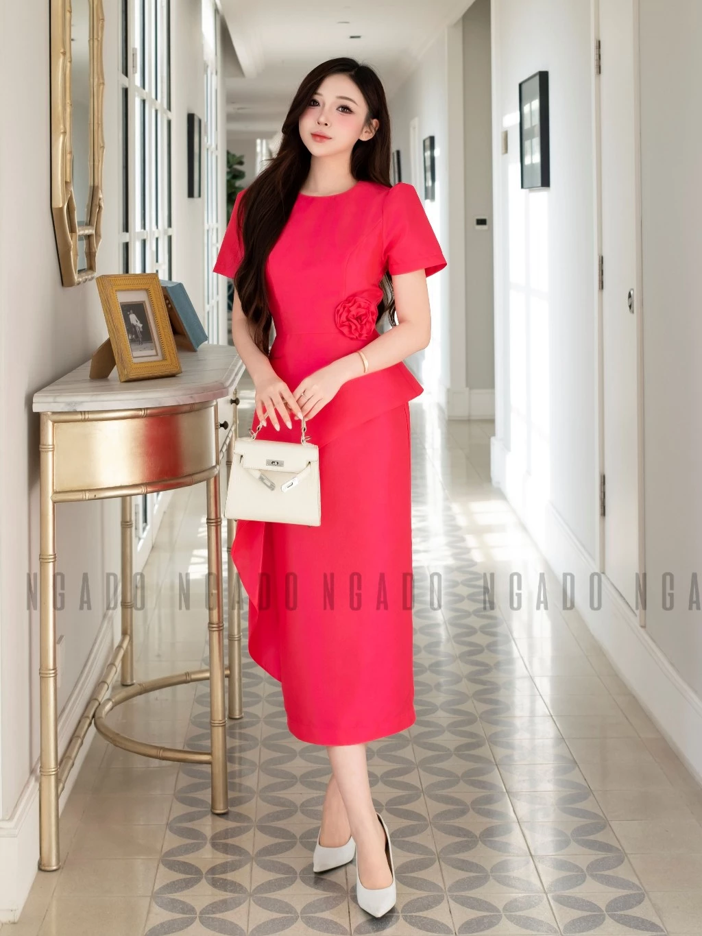 ✨Đầm hồng sen tay loe NGADO , đầm bút chì , đầm dự tiệc , đầm công sở