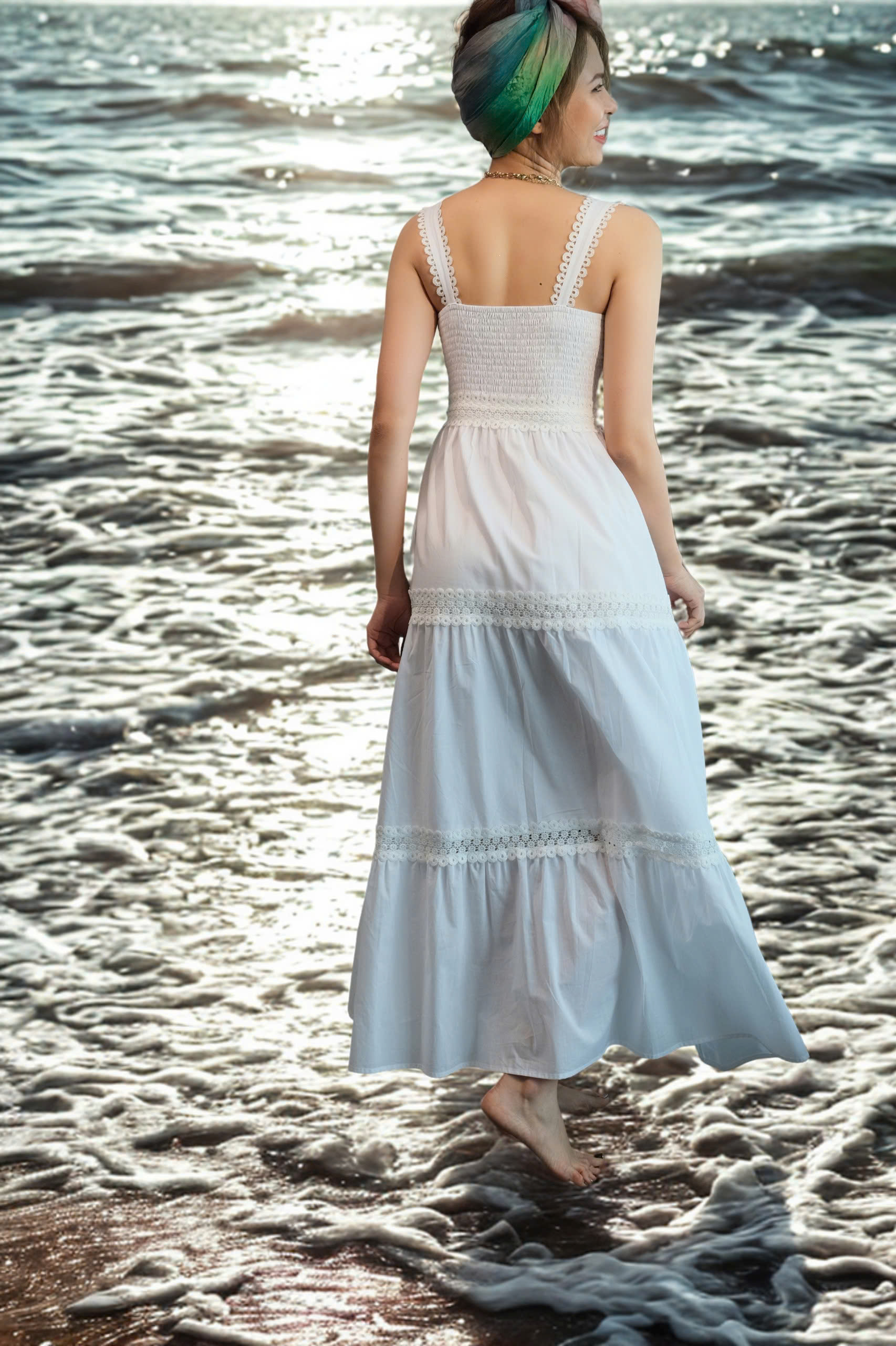 Váy maxi trắng 2 dây đi biển đẹp - Lami Shop