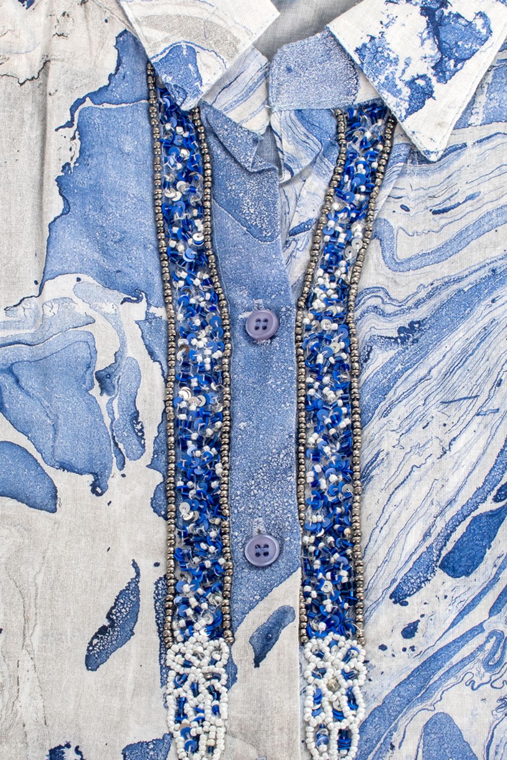 Đầm Sơ Mi Cotton, chất liệu cotton mềm mại, mỏng nhẹ. Phần trước ngực đính hạt tạo hình lá độc đáo. Mặc phối với quần short hoặc legging bên trong. Phom suông. Dài đầm 100cm