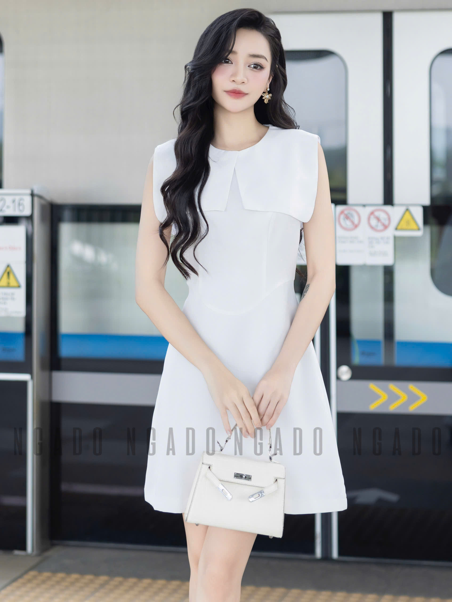 ✨Đầm trắng cổ thuỷ thủ NGADO , đầm sang trọng , đầm dự tiệc , công sở