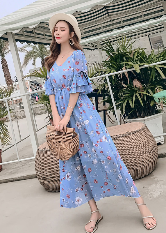 ✨Đầm voan dài dáng xòe thướt tha, cổ tim tay lỡ điệu đà, maxi đi biển cao cấp mẫu mới nhất | MX020