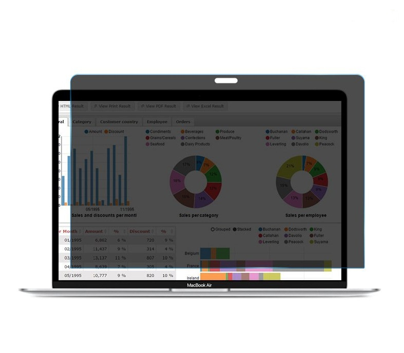 Sở hữu công nghệ Micro-Blind hiện đại làm cho màn hình Laptop Macbook luôn giữ được sự riêng tư cho góc nhìn bảo mật 60 độ (Luôn đảm bảo giữ bí mật mọi thông tin của chủ nhân với những người tò mò) những vẫn đảm bảo độ sắc nét và màu sắc truyền tải trung thực. Đây chính là đặc điểm nổi bật nhất của dòng sản phẩm này.