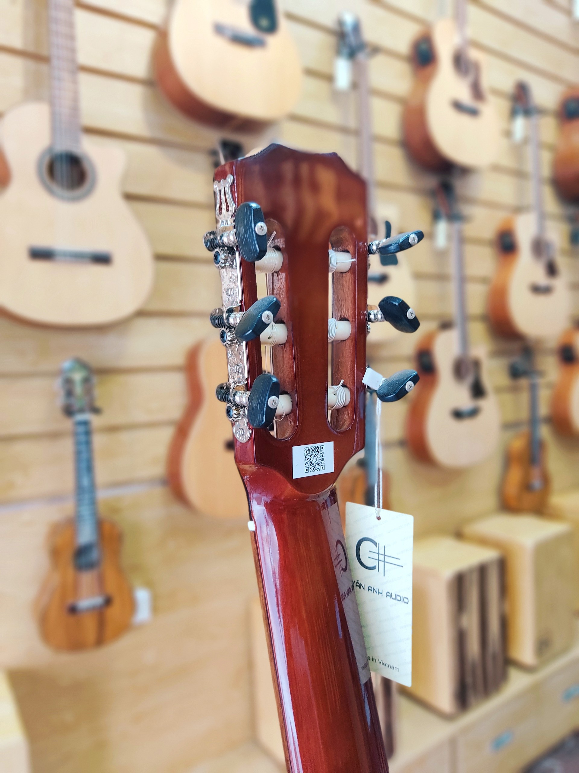 Shop Duy Guitar - đàn guitar classic chơi nhạc cổ điển Mã: DC120J Mặt: gỗ thông Eo + lưng: hồng đào chất lượng cao Cần: gỗ thao lao, có ty chống cong cần Mặt phím: