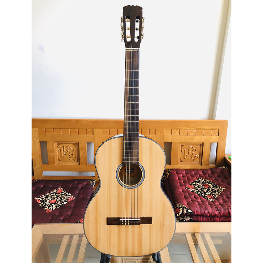 Shop Duy Guitar - đàn guitar classic chơi nhạc cổ điển Mã: DC120J Mặt: gỗ thông Eo + lưng: hồng đào chất lượng cao Cần: gỗ thao lao, có ty chống cong cần Mặt phím: