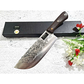 - Chất liệu: 100% thép nhíp ô tô được lựa chọn và kiểm duyệt kỹ càng. - Chất liệu cán: gỗ cẩm chỉ núi - Kích thước: lưỡi: 18cm, cán: 12cm, rộng: 6,5cm, dầy: 0,1,