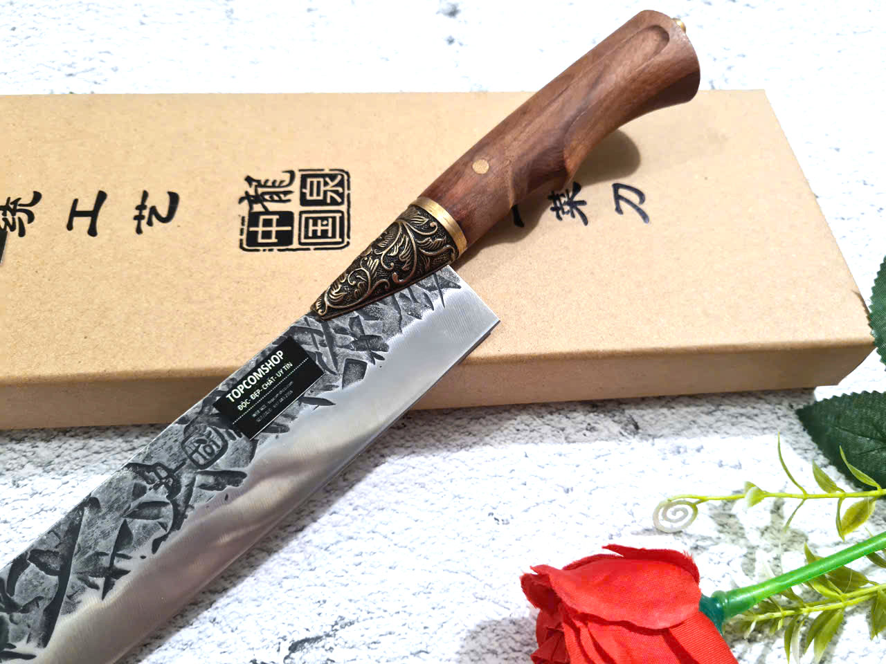 Tên sản phẩm: Dao Phúc Sen, Dao Thái Kiểu 03 Cán Gỗ Cẩm - Chức năng: chuyên thái thịt, rau củ - Chất liệu: 100% thép nhíp ô tô được lựa chọn và kiểm duyệt