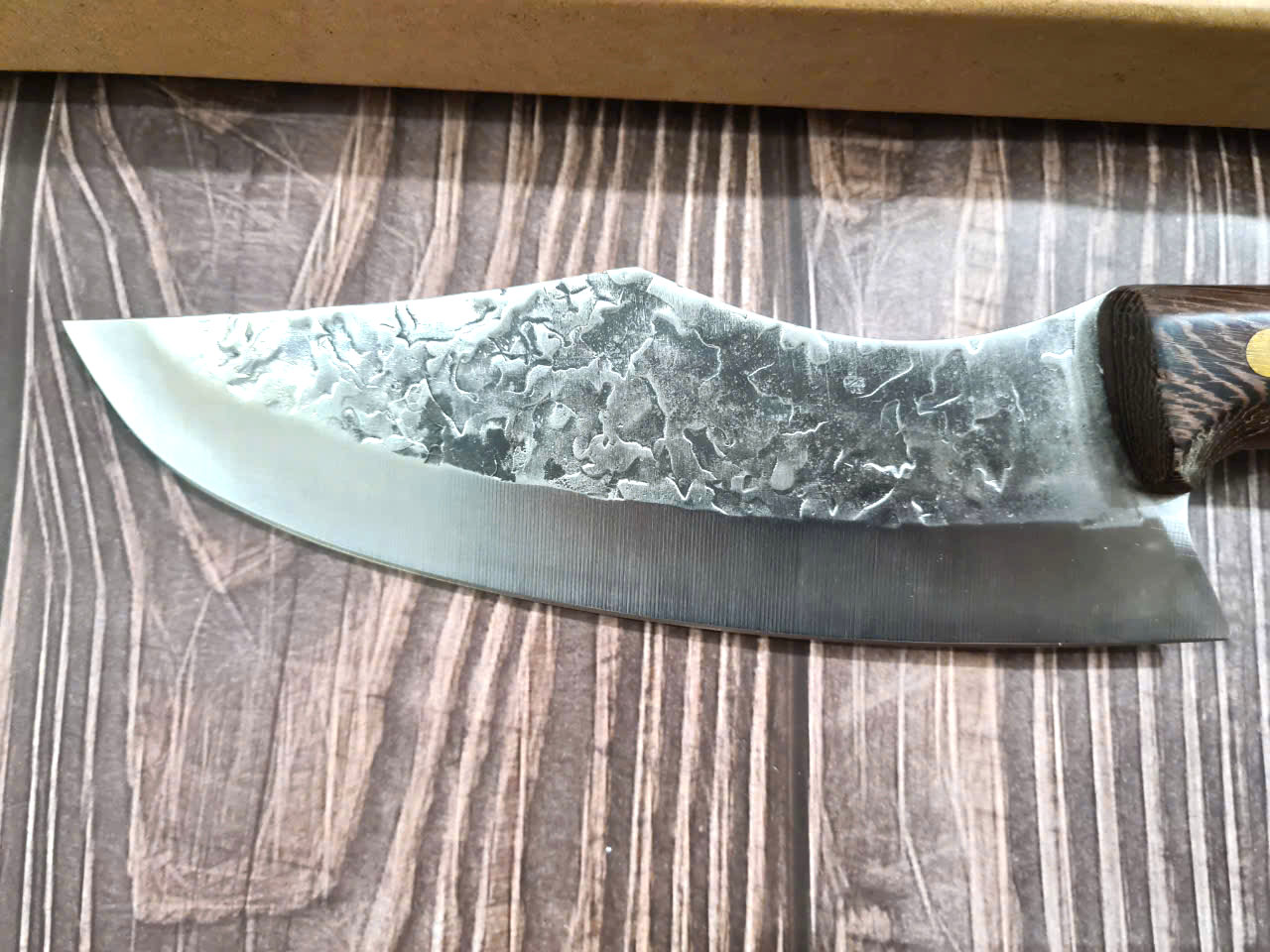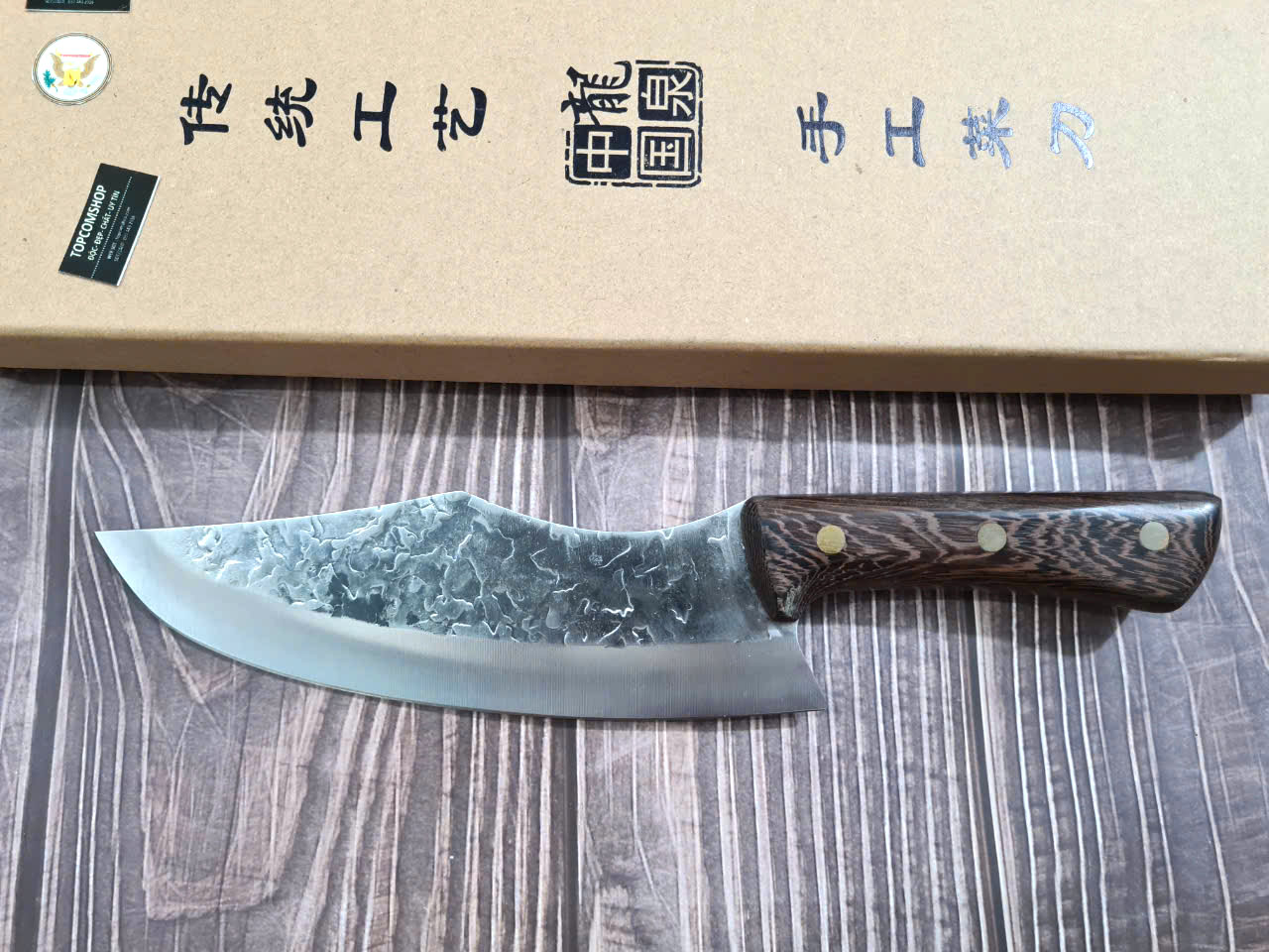 -THÔNG TIN SẢN PHẨM: Chiều dài tổng thể: 29.5cm, Chiều dài lưỡi: 19.5cm ,Chiều rộng lưỡi: 5cm Độ dày: 2.5MM, CHẤT liệu lưỡi: 5Cr15MOV (thép 5 crom 15 molypden vanadi) Chất liệu CÁN: gỗ Cánh gà NẶNG : 2.5 lạng Mặt D dập chìm hoa văn rất đẹp